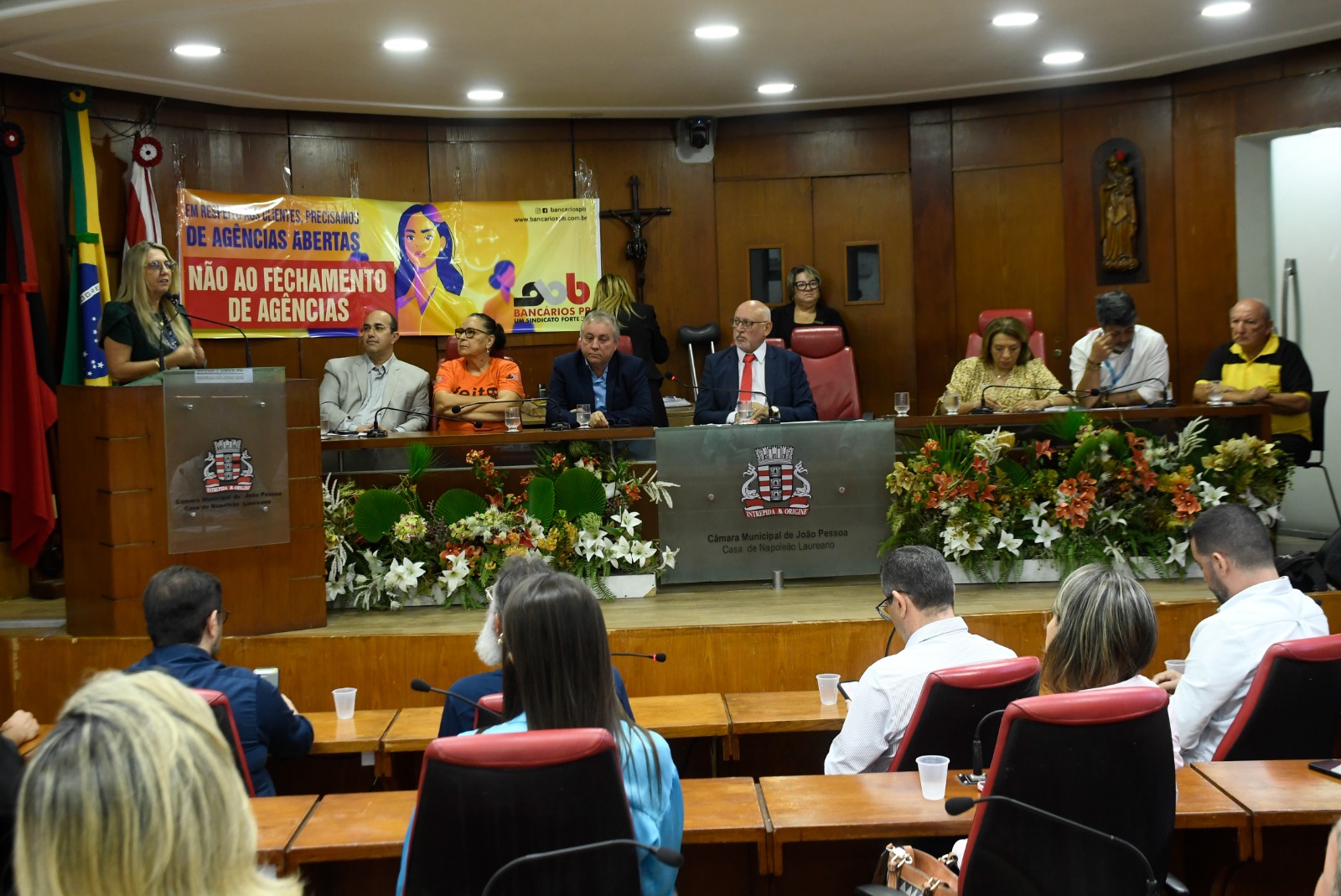 A Câmara Municipal de João Pessoa (CMJP) discutiu, na manhã desta quarta-feira (24), o fechamento de agências bancárias e o alto número de demissões no segmento bancário. A sessão especial, proposta pelo vereador Marcos Henriques (PT), foi realizada em conjunto com a Assembleia Legislativa do Estado da Paraíba (ALPB), representada pela deputada Cida Ramos (PT).